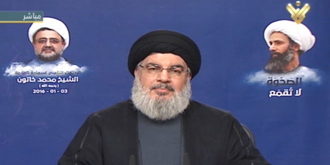 وأشار السيد نصر الله في كلمة له في الحفل التأبيني للعلامة الشيخ محمد خاتون إلى أن الإصرار على تنفيذ حكم الإعدام في هذا التوقيت وتجاهل مناشدات ورسائل المرجعيات الاسلامية بعدم تنفيذه يحمل رسالة تقول “إن النظام السعودي لا يعنيه الرأي العام الإسلامي والعالمي”.