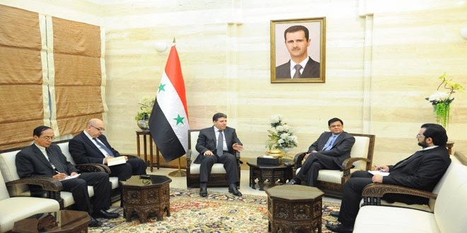 أكد رئيس مجلس الوزراء الدكتور وائل الحلقي خلال لقائه السفير الهندي بدمشق مان موهان بانوت اليوم ضرورة استثمار العلاقات التاريخية والاستراتيجية الراسخة والمتنامية بين سورية والهند عبر تعزيز التعاون في المجالات الاقتصادية والتجارية والصناعية والزراعية وبما يعود بالمنفعة على شعبي البلدين الصديقين.