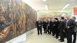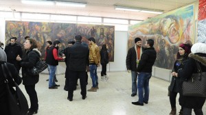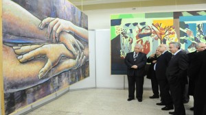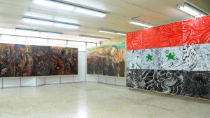وبين الدكتور جورج محفوض استاذ بكلية الفنون الجميلة قسم العمارة الداخلية أن اللوحات التي عرضت هي نتاج ورشة عمل خاصة باللوحات الجدارية أقيمت مؤخرا شارك بها عدد من اساتذة الكلية وطلابها حيث قاموا برسم لوحات جدارية حملت مواضيع ومعاني رمزية وفق مدارس فنية مختلفة عبرت عن الواقع والتزام الفنان بقضايا الوطن ودور الفن في مواجهة الثقافة الظلامية والتكفيرية للإرهاب .