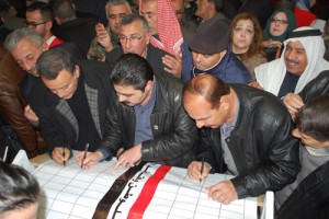 بدوره أعرب مصطفى السكري أمين فرع حماة لحزب البعث عن تقديره لدور الشباب المسؤول في مواجهة الأزمة الراهنة ومبادراتهم مؤكدا أن حماة ستبقى أرض المحبة والسلام والانتماء الراسخ للوطن وقائده مبينا أنه “وبعد الانتهاء من توقيع الرسالة سترفع إلى محكمة العدل الدولية في لاهاي للمطالبة برفع العقوبات عن سورية وعدم التدخل في إرادة وقرارات شعبها وحقه في تقرير مصيره”.