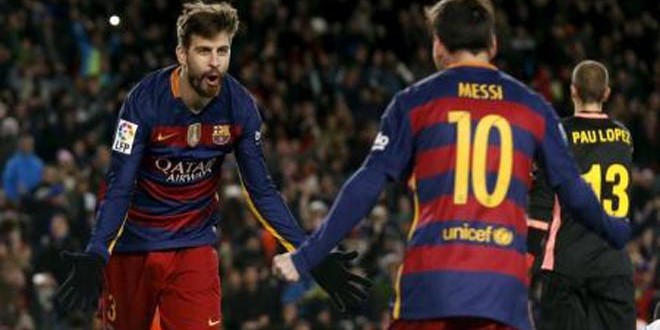 وساهم ميسي في صناعة هدفين لجيرار بيكي ونيمار في الشوط الثاني من المباراة المتوترة التي شهدت طرد هرنان بيريز وباباكولي ديوب من