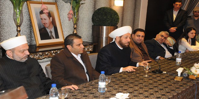 وأكد سماحة المفتي أن سورية ستبقى مثالا للتآخي والمحبة والسلام وأن السوريين متماسكون شعبا وقيادة وجيشا يجمعهم الإيمان بوطن واحد متسلحين بقيم واحدة في مواجهة الإرهاب.