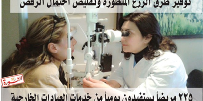 طورت الهيئة العامة لمشفى العيون الجراحي بدمشق والتابع لوزارة الصحة الخدمات الطبية المتاحة لديها وكشفت الدكتورة رنا عمران المديرة العامة للمشفى في تصريح للثورة أن من بين الأقسام التي شهدت نقلة نوعية خلال الأسابيع الأخيرة قسم زرع القرنية حيث وفر الكادر الطبي طرق الزرع المتطورة وقلص احتمال الرفض إلى الحدود الدنيا وأفضت العمليات المجراة لتاريخه نجاحاً من الناحية الجراحية آملة أن تحقق عمليات زرع القرنية كاملة السماكة والصفيحية حسب الاستطباب الهدف المأمول.