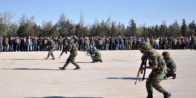دعما للجيش العربي السوري في حربه المتواصلة على الارهاب التكفيري تم اليوم في حمص تخريج الدورة الثالثة من فصائل الحماية الذاتية.