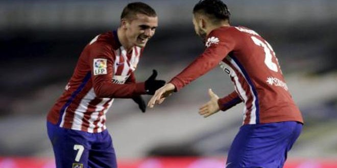 وأحرز كل من أنطوان غريزمان ويانيك كاراسكو هدفي اتليتيكو في المباراة التي جرت على ملعب اغرقته مياه الامطار.