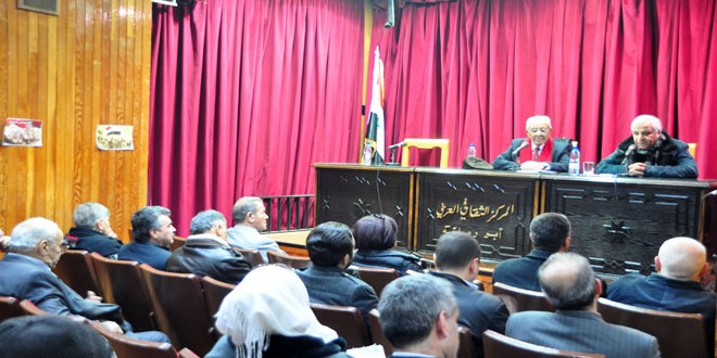 “سورية بين الإصلاح والاستهداف “عنوان الندوة التي أقامتها الأمانة العامة للثوابت الوطنية بالتعاون مع المركز الثقافي العربي في أبو رمانة بمشاركة الدكتور نبيل طعمة والدكتور عصام تكروري.