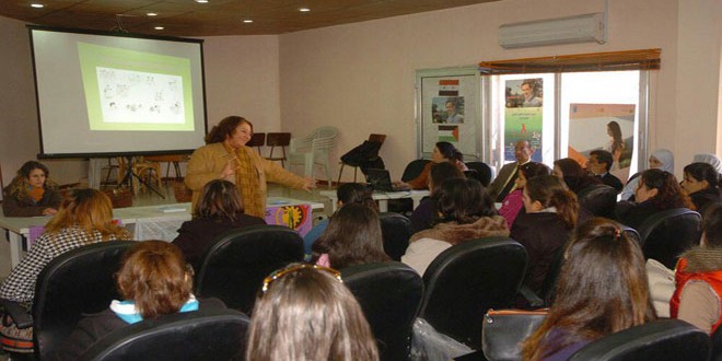 ونظم فرع منظمة الاتحاد العام النسائي بحماة أمس الأول ندوة حول أساليب الوقاية من وى فيروس الإيدز بمشاركة “30” متدربة من مختلف الروابط النسائية والأسر المهجرة مقيمة في مراكز الإقامة المؤقتة.