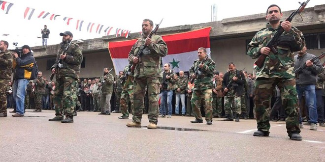 وأكد المتدرب غالب سلوم استعداده كغيره من المشاركين في الدورة للبدء بتنفيذ أي مهمة توكل إليه في حماية المنشآت والقرى والبلدات وحتى المشاركة في العمليات العسكرية إذا اقتضى الأمر.