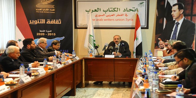 أكد اتحاد الكتاب العرب أن الثقافة والعقل السوريين يواجهان عبر خمس سنوات أكثر من قوة لتدمير إرثهم الحضاري وذاكرتهم الجمعية ووعيهم الاستثنائي وقبل ذلك وبعده مصادرة قرارهم الوطني.