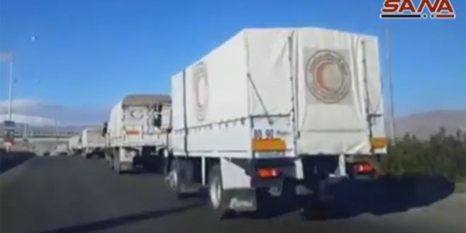 2016-01-14 توجه قافلة مساعدات إنسانية جديدة إلى الفوعة وكفريا بريف إدلب قافلة مساعدات 2016-01-14najwa