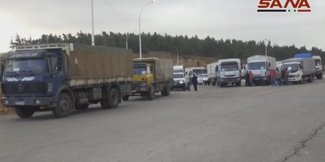 إدخال 63 شاحنة محملة بمساعدات إنسانية إلى بلدة مضايا وبلدتي كفريا والفوعة المحاصرتين من قبل التنظيمات الإرهابية