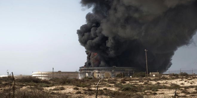وكان تنظيم “داعش” الارهابي شن في الخامس من الشهر الجاري هجوما للسيطرة على المرافئء النفطية في شرق ليبيا غير ان جهاز حرس المنشآت النفطية تصدى للهجوم ما تسبب في سقوط قتلى وجرحى واحتراق عدد من خزانات النفط.