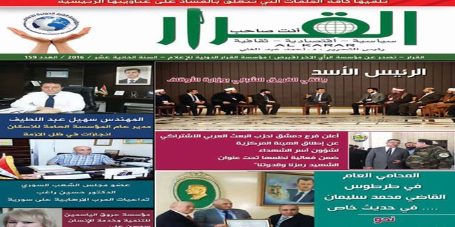 تضمن العدد الجديد من جريدة القرار حوارات في الثقافة والاقتصاد والسياسة إضافة لقصائد شعرية ومقالات متنوعة وقراءات فكرية مختلفة .