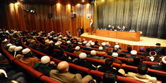 من جانبه أكد الدكتور همام حيدر أمين فرع ريف دمشق لحزب البعث العربي الاشتراكي أن وزارة الأوقاف وعلماء الدين الإسلامي والدعاة والداعيات كانوا في مقدمة من وقفوا إلى جانب جيشنا الباسل والقوى الرديفة في وجه المؤامرة ومقارعة الفكر التكفيري الظلامي عبر مشروع “فضيلة وفقه الأزمة” وقدموا الشهيد تلو الشهيد دفاعا عن الدين والوطن.