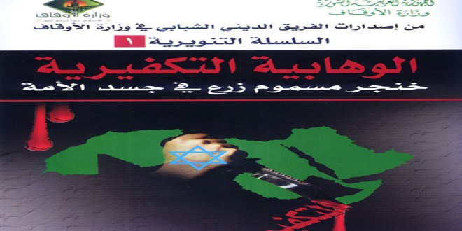 أصدر الفريق الديني الشبابي في وزارة الأوقاف كتيبا بعنوان “الوهابية التكفيرية.. خنجر مسموم زرع في جسد الأمة” في خطوة لفضح هذه الحركة التكفيرية المتطرفة بأسلوب عصري وسهل وفق روءية الفريق حول سرعة المعلومة وسهولة ايصالها للمتلقين ونشرها.