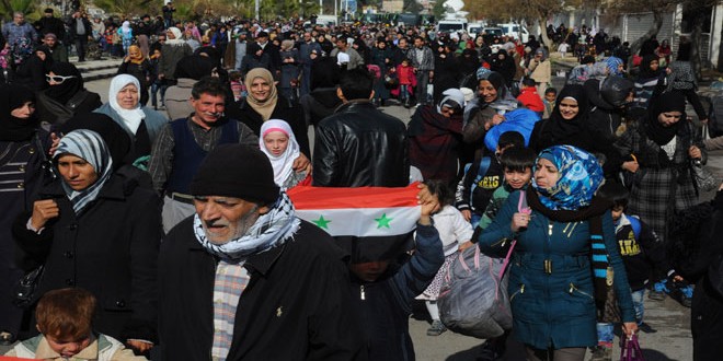 وذكر موفد سانا إلى المنطقة أن 25 حافلة كبيرة تقل مئات الأشخاص دخلت إلى الحيين الغربي والشرقي من منطقة القدم بعد إنجاز جميع الإجراءات اللازمة لعودتهم إلى منازلهم التي فروا منها بسبب إرهاب المجموعات المسلحة.