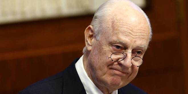 قال مبعوث الأمم المتحدة الى سورية ستافان دي ميستورا اليوم إن المحادثات بين الحكومة السورية والمعارضة في جنيف “قد لا تبدأ كما هو مخطط له في 25 الشهر الجاري”.