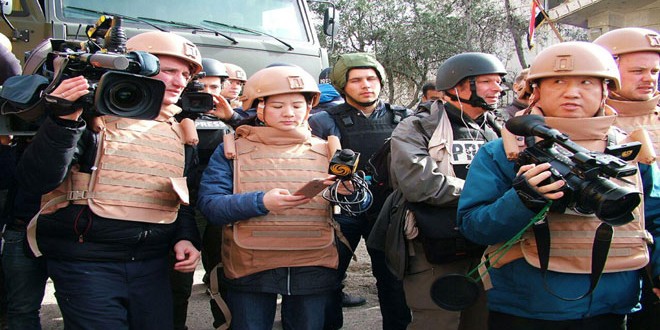 زار وفد إعلامي يضم 30 مراسلاً لوسائل إعلام روسية وصينية ونرويجية وهولندية ومن رابطة الدول المستقلة اليوم بلدة سلمى بريف اللاذقية الشمالي وعدداً من القرى والمزارع المجاورة التي أعاد إليها الجيش العربي السوري الأمن والاستقرار مؤخراً.