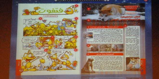 وأكد خليل ضرورة تعاون المؤسسات الوطنية كافة حتى تعم الفائدة في تنشئة الجيل على حب الوطن والتمسك به والدفاع عنه مبينا أن الكتاب الإلكتروني يتناول الآن اللغة العربية بطريقة حيوية ومبسطة لإيضاح كل المعلومات ولاسيما في هذه اللحظة التي يعيشون فيها مواجهة ثقافة الحرب الوافدة إلينا عبر مؤامرات عديدة.