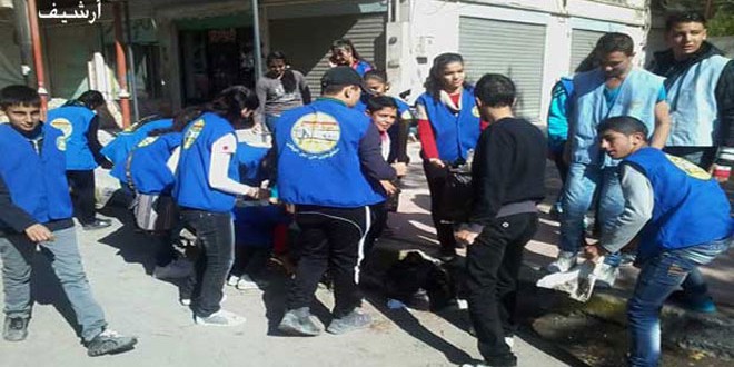 بمشاركة “60” شابا وشابة نفذت رابطة المحروسة بفرع منظمة اتحاد شبيبة الثورة في حماة اليوم حملة نظافة تطوعية شملت تنظيف حديقة الشهداء في البلدة وترحيل الأنقاض وتهذيب الأشجار وتقليمها.