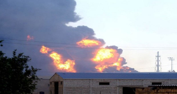 وأشارت المؤسسة إلى أن سبعة من الخزانات المشتعلة مخصصة لتخزين مادة البنزين بينما يخصص الثامن لتخزين مادة كيروسين المنازل موضحة أن جميع خزانات البنزين تشتعل حاليا في الوقت الذي يحاول فيه رجال الإطفاء الدخول إلى المستودع لإطفائه والحد من انتقاله إلى الخزانات الأخرى وخزانات غاز الطهي.
