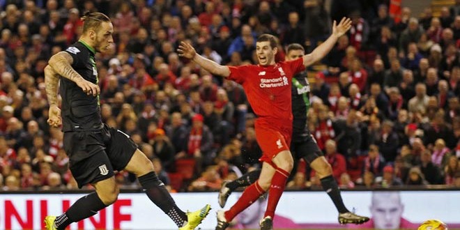 فاز فريق ليفربول أمس على ضيفه ستوك سيتي بركلات الترجيح ليتأهل إلى نهائي كأس رابطة الأندية الانكليزية لكرة القدم بعد مباراة في إياب الدور قبل النهائي باستاد انفيلد.