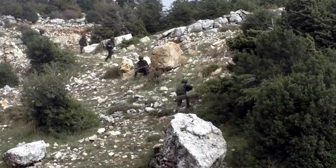 وأشار المصدر إلى أن وحدات الجيش “قامت بعمليات التمشيط وإزالة العبوات الناسفة التي زرعتها التنظيمات الإرهابية التكفيرية قبل سقوط عدد من أفرادها قتلى وتدمير أسلحة وعتاد حربي لهم وفرار من تبقى منهم باتجاه الأحراج في المنطقة”.