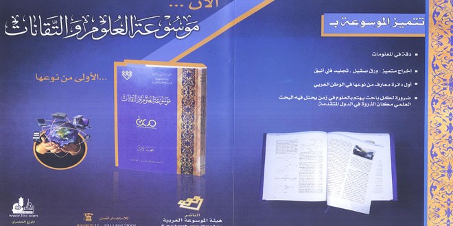 أصدرت هيئة الموسوعة العربية في دمشق المجلد الأول من “موسوعة العلوم والتقانات” التي تعتبر مصدرا معرفيا وعلميا وتقانيا موثوقا لتقديم المعلومة والفائدة للمختصين والمهنيين وللمعنيين من غير المختصين ولعلماء المستقبل وطلاب العلم في العالم العربي نظرا لأهمية المعارف الإنسانية في خدمة المجتمعات البشرية ولكون العلم القوة المحركة الرئيسية لحياة الشعوب ورفاهيتها واقتصادها.