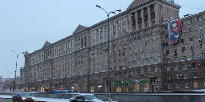 وذكر موقع “روسيا اليوم” الالكتروني أن فنانين من مجموعة “غلاف بلاكاتان” الروسية علقوا صورة ضخمة للرئيس الأمريكي باراك اوباما كتب عليها “قاتل” تحاكي بورتريه لأوباما استخدم في منشورات خلال حملته الانتخابية عام “2008”.