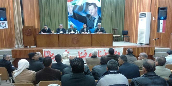 بدوره أكد عضو قيادة فرع درعا لحزب البعث العربي الاشتراكي رئيس مكتب العمال المهندس عهدي زين العابدين ضرورة العمل لمحاربة المحتكرين وتجار الأزمة ومساندة الجيش العربي السوري في تصديه للإرهاب.