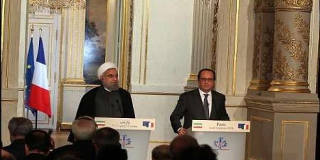 بدوره أشار هولاند إلى أن “باريس تتطلع لتذليل كل العقبات والمشاكل التي تعترض تطوير العلاقات مع طهران” موضحا أن شركة طيران ايرباص الفرنسية ستعود إلى طهران كاشفا عن توقيعه 30 وثيقة واتفاقية للتعاون بين البلدين.