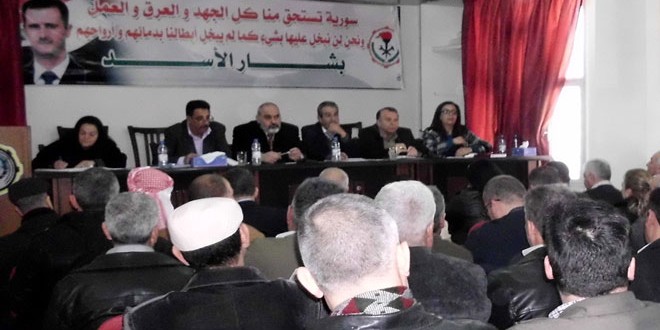 وفي دمشق طالب أعضاء نقابتي الصناعات المعدنية والبناء والأخشاب بالإسراع في تأهيل المؤسسات والشركات الصناعية الي دمرتها التنظيمات الإرهابية المسلحة لاستئناف حركة الإنتاج وتأمين مواد أولية للمصانع وآليات هندسية وفنية حديثة وتوفير بيئة عمل صحية للعاملين في قطاع الأخشاب والبناء.
