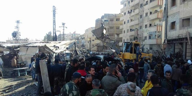 وكان أكثر من 50 مواطنا استشهدوا وأصيب أكثر من 100 بجروح من جراء ثلاثة تفجيرات إرهابية بسيارة مفخخة وانتحاريين بحزامين ناسفين استهدفت بلدة السيدة زينب بريف دمشق بالتوازي مع الحوار السوري السوري في جنيف الذي تأخر بسبب عرقلة وفد معارضة الرياض والدول الداعمة له وإصرارهم على فرض شروط مسبقة بخلاف ما نص عليه قرار مجلس الامن رقم 2254 وبياني فيينا.