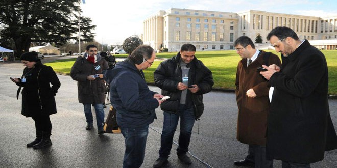 الوفد الإعلامي الذي يغطي فعاليات الحوار السوري السوري في جنيف