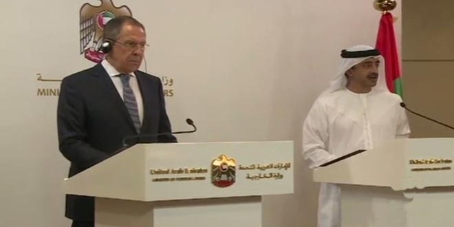 وأعرب لافروف عن دعم روسيا لجهود دي ميستورا مشيرا إلى اعتزام روسيا والإمارات التعاون فيما يتعلق بسورية ضمن اطر المجموعة الدولية لدعم سورية.
