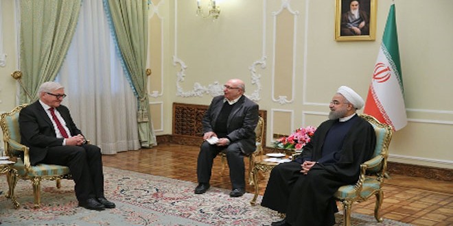 وقال روحاني خلال لقائه في طهران اليوم وزير الخارجية الألماني فرانك فالتر شتاينماير.. “إن بإمكان إيران وألمانيا فضلا عن الرقي بالعلاقات الثنائية التعاون معا في مسار حل المشكلات الإقليمية والدولية وخاصة مكافحة الإرهاب وإرساء السلام والاستقرار في المنطقة”.