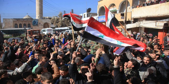 وأوضح حمدان في بيان اليوم أن فك الحصار الذي فرضه الإرهابيون على بلدتي نبل والزهراء لأكثر من ثلاث سنوات يؤكد على الإصرار والفعل الجدي لتحقيق الأهداف الاستراتيجية عبر الدعم الجوي الروسي وتقوم هذه الأهداف على إغلاق خط الحدود التركية السورية بشكل نهائي ووقف الدعم التركي من النواحي اللوجيستية للإرهابيين وتهريب النفط إلى الداخل التركي.