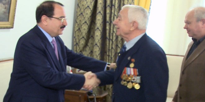 وقدم قدامى المحاربين الروس باسم منظمتهم للسفير حداد شهادة تقدير تثمن جهوده الحثيثة في تعزيز الصداقة الروسية السورية وتوطيد التعاون بين الشعبين السوري والروسي كما قدموا للسفارة السورية راية المنظمة الروسية لقدامى المحاربين في سورية لتكون نبراسا يعبر عن عمق العلاقة بين البلدين في النضال ضد العدو المشترك.