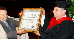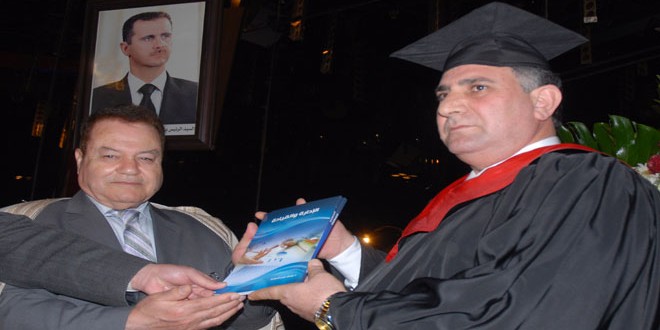 وقدم مندوب جامعة كاسل الألمانية ورئيس الاتحاد العربي للثقافة البروفيسور فوزي الخضري خلال الحفل شهادة دكتوراه فخرية في العلوم الإدارية للباحث السلامة عن مجمل أعماله وبحوثه في هذا المجال بعد أن رشحته اللجنة الإقليمية إلى الجامعة كما قدم الخضري باسم الاتحاد العربي شهادات تقدير إلى جمال القادري رئيس الاتحاد العام لنقابات العمال والدكتور وائل الإمام أمين فرع دمشق لحزب البعث العربي الاشتراكي وباسم سودان عضو المكتب التنفيذي للاتحاد الوطني لطلبة سورية.