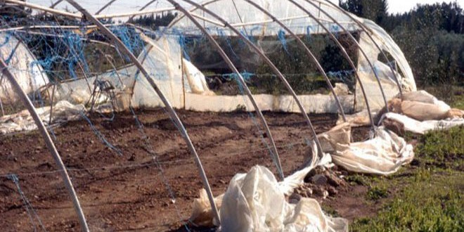 قال مدير زراعة حمص: إن الثلوج وموجة الصقيع التي شهدتها المحافظة الشهر الماضي تسببت بأضرار لـ2447 بيتا بلاستيكيا في الريف الغربي ولم تسجل أي أضرار على باقي المحاصيل الزراعية والأشجار المثمرة.