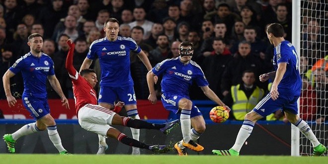 وسجل جيسي لينغارد هدفا لمانشستر بعد مرور ساعة من اللعب ولكن دييغو كوستا أحرز هدف التعادل ليمنح تشيلسي نقطة ويحافظ على مسيرة المدرب جوس هيدينك الخالية من الهزائم منذ عودته للنادي كمدرب مؤقت في كانون الأول الماضي.