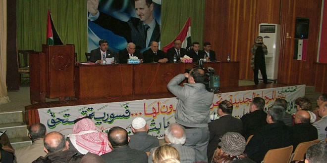 ونوه أمين فرع درعا لحزب البعث العربي الاشتراكي كمال العتمة بتزامن انعقاد المؤتمر مع الانتصارات التي حققها الجيش العربي السوري في الشيخ مسكين وعتمان وبجهود الأطباء في تقديم الخدمات لمحتاجيها وصمودهم على رأس عملهم كرديف للجيش في سبيل تعزيز صمود المواطنين .
