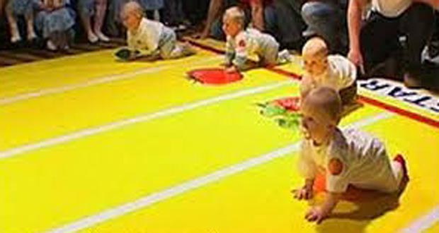 خاض عشرات الأطفال الرضع في معرض هونغ كونغ، مسابقة للزحف وسط حفاوة من آبائهم الذين كانوا يشجعونهم على الوصول إلى الهدف للحصول على لقب الأسرع.
