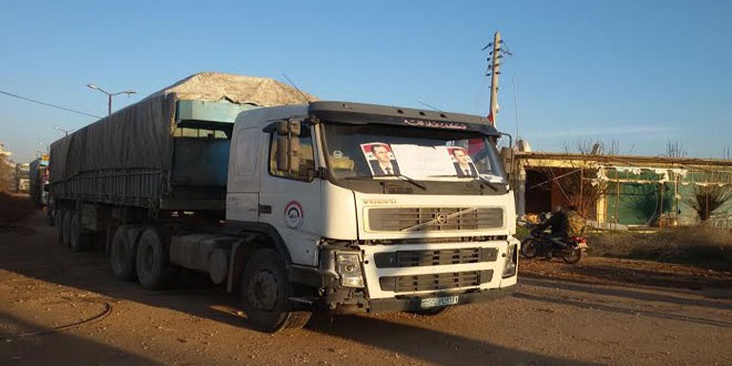 سيرت محافظة حلب اليوم 20 شاحنة إلى مدينتي نبل والزهراء بريف حلب الشمالي تحوي مواد غذائية ومستلزمات طبية ومساعدات إغاثية.
