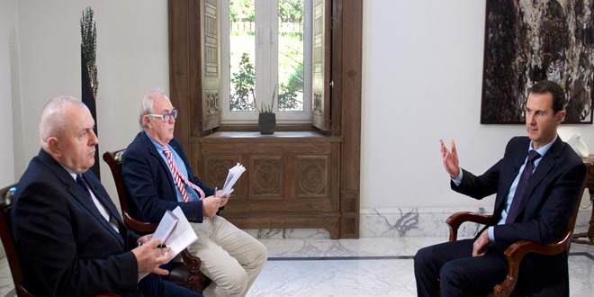 الصحفي: نودّ أن نشكركم سيادة الرئيس على تفضّلكم بالإجابة على أسئلتنا في هذه اللحظات الحاسمة في تاريخ سورية والمنطقة.