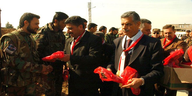 تقديرا لتضحياتهم في سبيل الذود عن الوطن زار أعضاء “جمعية سورية يا حبيبتي ” في الحسكة اليوم حواجز الجيش العربي السوري الواقعة على أطراف مدينة الحسكة.