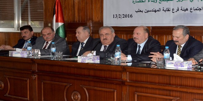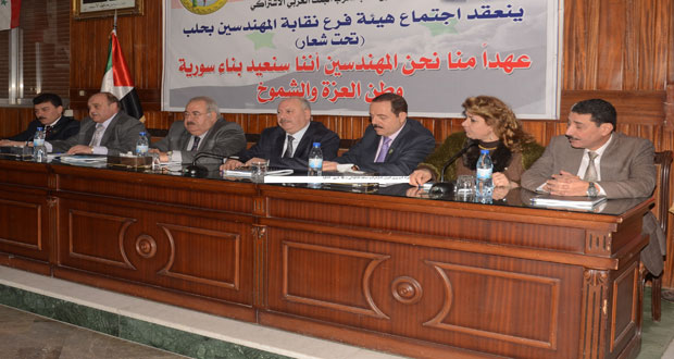 طالب مهندسو حلب بمواصلة التعاون مع الإدارات والمؤسسات الحكومية والمجالس المحلية والبلديات والنقابات لفتح مجالات عمل جديدة للمهندسين ولا سيما الذين تأثروا بالظروف الراهنة لتحسين دخلهم.