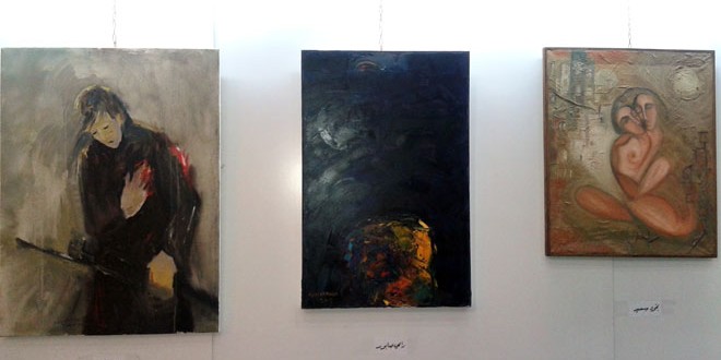بدوره شرح مضر سليمة معاني لوحته التي رسمها خصيصا للمعرض محاولا أن يظهر فيها حالة الحزن التي تلف حياة الشخص العاشق.
