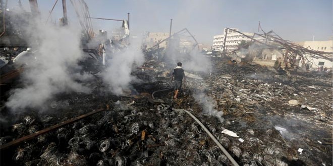 وأضاف المصدر ان طيران العدوان السعودي استهدف بعشرات الغارات مساء أمس مديريات نهم وبني مطر والسبعين مسببا أضرارا بالغه بالمنازل والأراضي الزراعية والمحلات التجارية كما استهدف بقنابل شديدة الانفجار للمرة الثانية على التوالي خلال 24 ساعة منطقتي النهدين والسبعين.