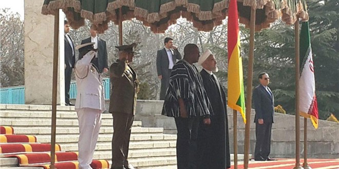 من جانبه أكد الرئيس الغاني الذي يعد أول زعيم إفريقي يزور إيران بعد الاتفاق النووي ورفع الحظر عن ايران أن الازمات لا يمكن حلها إلا سياسيا بعيدا عن الأساليب العسكرية لافتا إلى أن إيران تقوم بدور بناء في حل الأزمات على المستوى الدولي وتسهم بشكل فعال في مجال مكافحة التطرف والإرهاب الذي يستوجب التعاون بين جميع الدول.